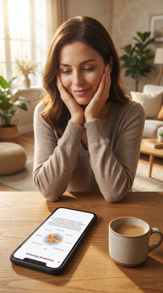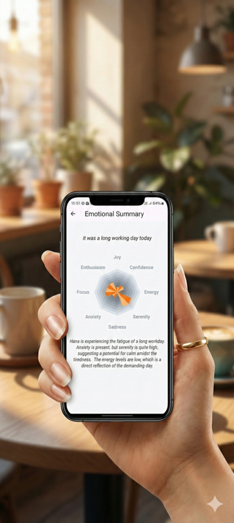 Your insights appear in your private emotional diary and graph — available only to you.
